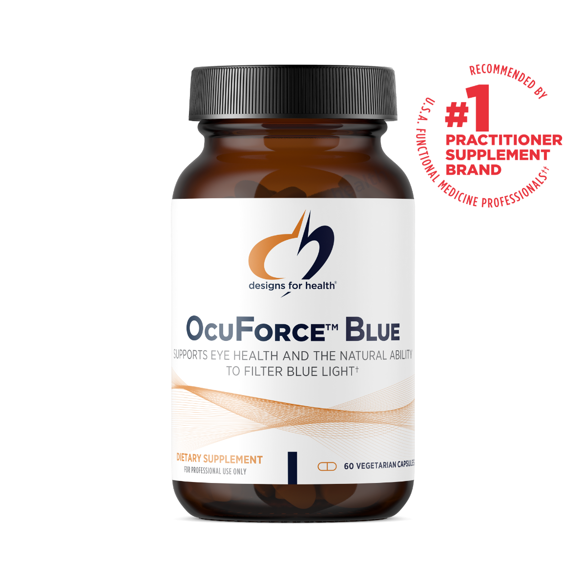 OcuForce™ Blue provides a targeted blend of macular-supportive nutrients formulated to help promote the eyes’ natural ability to filter blue light and reduce the effects associated with extended screen-time exposure.* This formula is a synergistic combination of lutein and zeaxanthin isomers (as Lutemax® 2020), maqui berry extract (as MaquiCare™), ginkgo, bilberry, astaxanthin (as AstaREAL®), and vitamin E isomers (as DeltaGold® delta- and gamma-tocotrienols) designed to help protect the eyes from blue light damage.* OcuForce™ Blue is ideal for the teenage years through late adulthood or for anyone with prolonged exposure to blue light from screens who are seeking a preventative approach to help maintain healthy vision.*